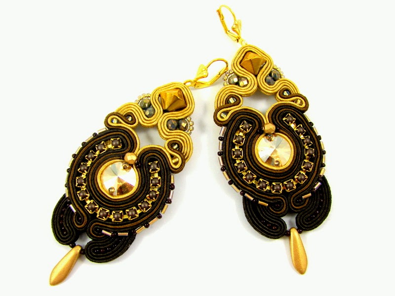 eleganckich kolczykach wykonanych metodą haftu sutasz. Drobne kryształki
